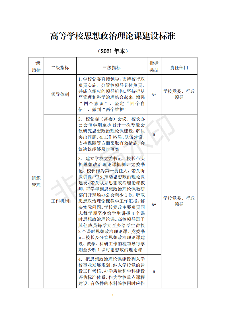 《高等学校思想政治理论课建设标准(2021年本)》