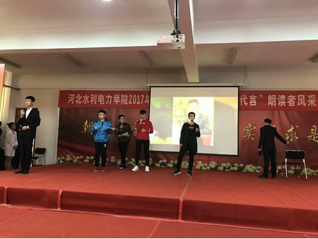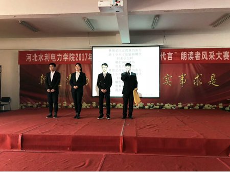 弘扬新时代主旋律,倡导新青年正能量。为更好的贯彻党的十九大精神,增强学生思想政治素养,加强对学生理想信念及思想道德教育,12月21日下午两点,思政部在大学生活动中心举办了“与时代同心,为青春代言”朗读者风采大赛。本次比赛由思政部老师担任评委。 比赛过程中,来自全校的九个参赛团队分别带来了主题鲜明、各具特色、充满激情的精彩展示。其中,郭京团队带来的《遇见》让我们在时光的流转中感知亲情、友情、爱情的温馨与力量,张萌同学的《青春之路、砥砺前行》又让我们感受到新时代大学生对于学习的执著与坚守,陈青松同学的《寒冬三月,暖言温心》将生动有力的演讲与活泼有趣的案例展示相结合,诠释了“与人为善,和谐相处”的核心理念,安楠团队带来的《我是一个行动派》更是将“行动派”的概念阐释的几近完美,从中鼓励大家要学会实践、勇于实践、不断实践,在实践中提升自我,在实践中收获真理与成长。整个比赛现场气氛异常热烈,期间掌声不断。最后大赛本着“公平、公正、公开”的原则评选出一、二、三等奖。 本次比赛本着“与时代同心,为青春代言”的鲜明主题,在挖掘学生自身才华与潜能的同时,也激发了学生的历史使命感与社会责任感,激励青年学生在党的十九大精神的引领下,不忘初心,牢记使命,不断学习,继续前进,在实现“中国梦”的伟大征程中发挥青春正能量,放飞青春梦想。