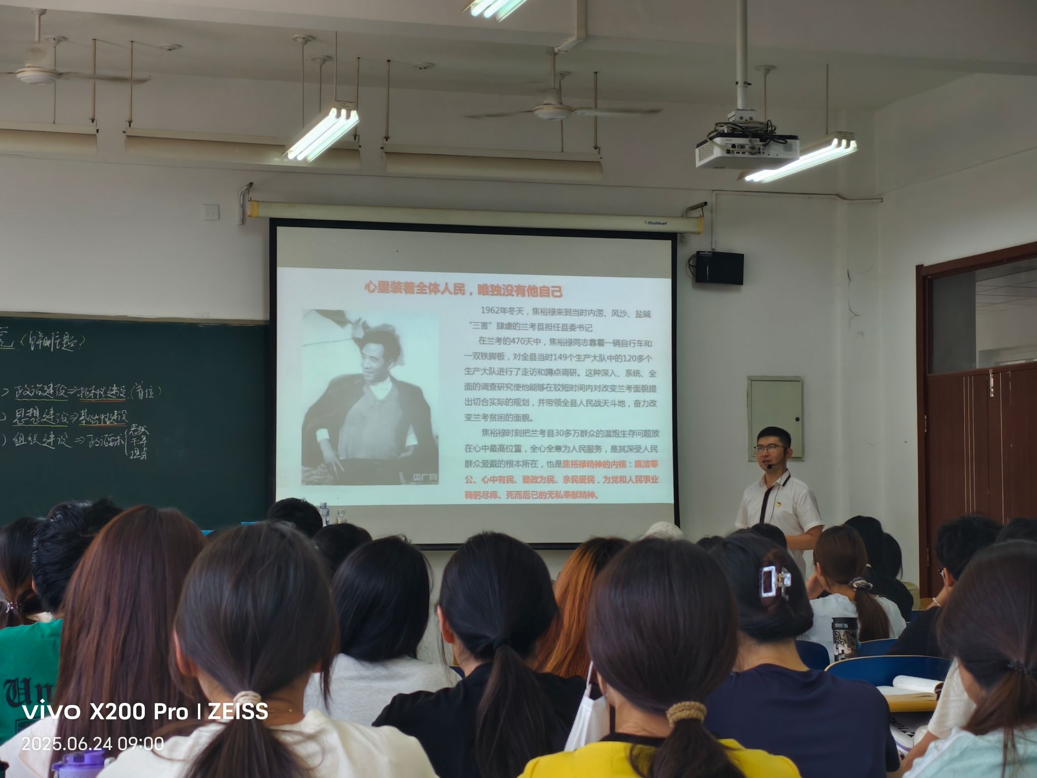 课上,尹老师结合丰富的案例,从清朝官员张伯行的《却赠檄文》引出恪守清廉是为官底线,到新中国建设时期焦裕禄同志熔铸的精神丰碑,再到新时代脱贫攻坚中黄文秀同志的初心坚守,层层递进解读新时代党员干部要明大德、严私德,既要恪守立党为公、执政为民、无私奉献的价值追求和使命担当,也要恪守戒贪止欲、克己奉公的行为准则和信念操守。